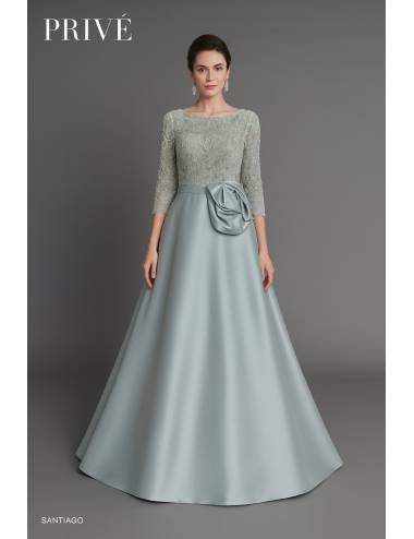Elegancia en su máxima expresión. Este vestido de la colección Privé combina un cuerpo bordado con pedrería y encaje en tono plata suave con una falda satinada que cae con un volumen majestuoso. El detalle del lazo lateral realza la cintura aportando un toque de distinción y feminidad. Ideal para madrinas o invitadas que buscan un look sofisticado, glamuroso y atemporal.