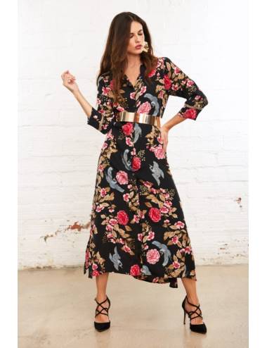 Vestido midi de estilo boho con corte asimétrico más largo por detrás y detalle de volantes en el bajo. Presenta mangas tres cuartos con acabado acampanado y un delicado estampado floral que aporta movimiento y frescura. Su tejido ligero y fluido lo convierte en una prenda ideal para un look moderno, femenino y lleno de personalidad.