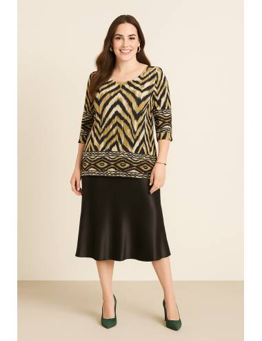 Esta blusa destaca por su estampado inspirado en motivos animales, con un diseño dinámico que combina líneas en contraste para crear un efecto visual estilizado. Su tejido ligero y plisado aporta una caída suave que favorece la figura. Las mangas tres cuartos añaden comodidad y un toque sofisticado, mientras que el borde inferior con dibujo geométrico enmarca la prenda con mucha personalidad. Perfecta para looks modernos y con estilo.