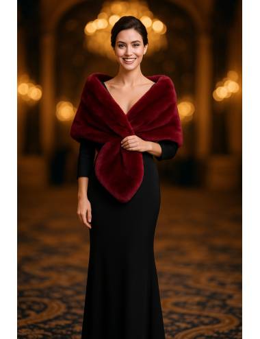 Estola de pelo burdeos con un tacto ultrasuave y un acabado de brillo elegante. Su diseño envolvente realza el cuello y los hombros aportando calidez y sofisticación. Perfecta para eventos de noche o celebraciones invernales, combina lujo y comodidad en una sola pieza, elevando cualquier look con un toque distinguido y glamuroso.