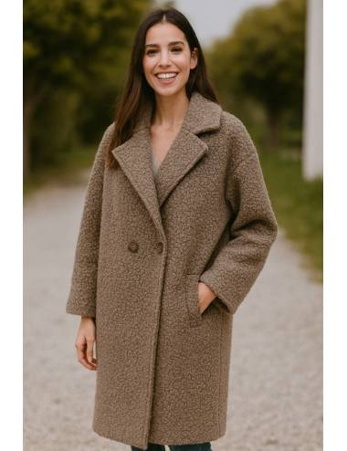 Abrigo tipo borreguito de corte recto y estilo minimalista, ideal para looks cálidos y sofisticados. Presenta solapa amplia, cierre delantero con dos botones y mangas holgadas que aportan comodidad. Su textura suave y mullida ofrece abrigo sin peso, perfecto para combinar con vaqueros o vestidos en días fríos con un toque elegante.