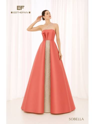 Elegancia y sofisticación se unen en este impresionante vestido de gala color coral. Su diseño asimétrico realza la figura con un delicado detalle bordado en tono beige brillante que aporta un toque de luz y distinción. Ideal para invitadas que buscan destacar con estilo y feminidad en cualquier evento especial.