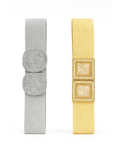 Colección de cinturones elásticos decorativos diseñados para realzar cualquier look con estilo y personalidad. Disponibles en tonos como negro, lavanda, beige, plata y fibras naturales, cada cinturón presenta hebillas exclusivas: desde espirales metálicas doradas o plateadas, hasta aplicaciones con perlas, cuentas, conchas o detalles artesanales. Perfectos para vestidos, blusas oversize o conjuntos de fiesta, estos cinturones combinan elegancia y versatilidad en cada diseño.