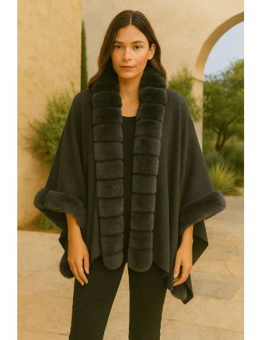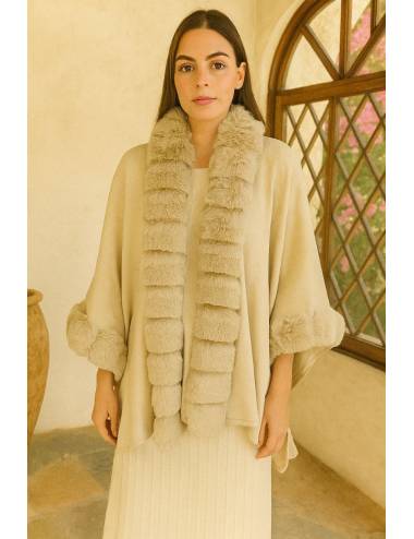 Estola elegante con acabado en tejido suave y detalles de pelo sintético en el cuello y los bordes. Su diseño envolvente aporta calidez y sofisticación, ideal para completar looks invernales con un toque de distinción.