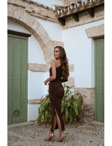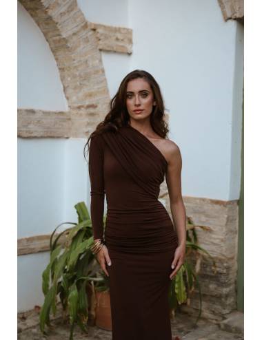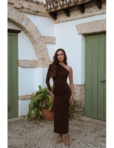 n diseño sofisticado que realza la silueta femenina gracias a su corte entallado y fruncidos estratégicos. Su escote de un solo hombro aporta un aire moderno y elegante, perfecto para destacar en cualquier celebración. Con falda larga de línea recta y tejido con caída fluida, este vestido es ideal para bodas, eventos especiales y noches inolvidables.