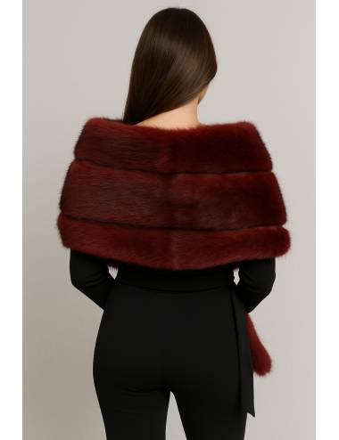 Estola de pelo burdeos con un tacto ultrasuave y un acabado de brillo elegante. Su diseño envolvente realza el cuello y los hombros aportando calidez y sofisticación. Perfecta para eventos de noche o celebraciones invernales, combina lujo y comodidad en una sola pieza, elevando cualquier look con un toque distinguido y glamuroso.