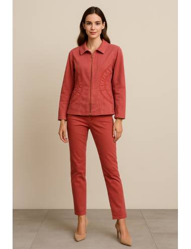 Conjunto coordinado de chaqueta y pantalón con un diseño moderno y favorecedor. La chaqueta destaca por su corte estructurado y detalles fruncidos que estilizan la figura, mientras que el pantalón de línea recta aporta comodidad y elegancia. Ideal para lucir un estilo pulido y actual, perfecto para el día a día o para un look más sofisticado con tacones.