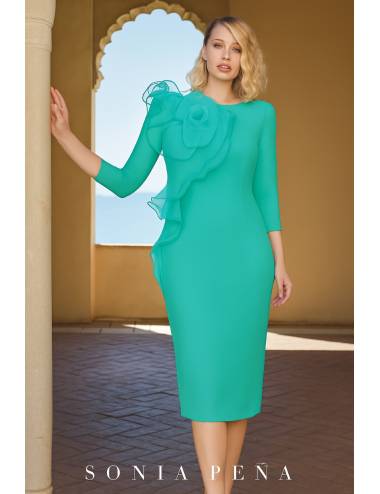 Vestido de línea entallada con un elegante volante de organza que recorre el lateral del cuerpo, aportando movimiento y sofisticación. Su corte midi y las mangas tres cuartos lo convierten en una opción ideal para eventos de día o de tarde. Una prenda de diseño impecable que realza la silueta con sutileza y estilo, perfecta para invitadas que buscan distinción y modernidad.