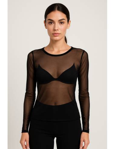 Una blusa ligera y moderna, confeccionada en tejido translúcido que aporta un toque sofisticado y actual. Su diseño combina manga larga con un interior de tirantes finos que realza el contraste y potencia la silueta. Es una prenda versátil y atrevida, ideal para looks urbanos y estilizados, perfecta para combinar con pantalones de talle alto o faldas ajustadas para lograr un conjunto elegante y favorecedor.